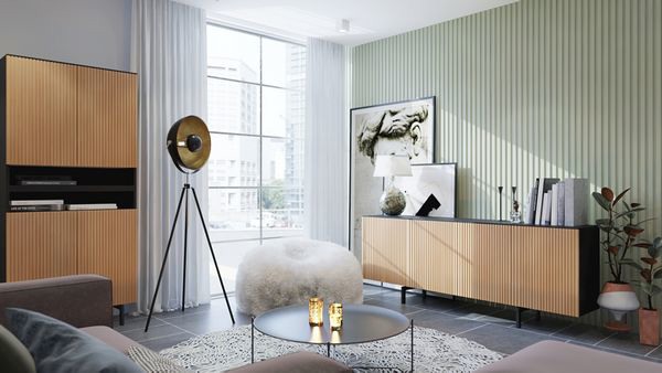 De Piano collectie is een compleet nieuwe collectie in zwart en naturel geborsteld mangohout. Deze strak belijnde collectie staat op hoge stalen poten. Het greeploze programma wordt gekenmerkt door haar donkere buitenkast en blank houten deuren en laden.