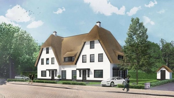 Deze karakteristieke nieuw te bouwen rietgedekte helft van een dubbele villa is gelegen in de lommerrijke en gewilde woonomgeving de Sijsjesberg in Huizen.