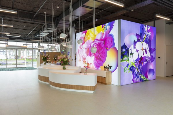 FloriWorld is de naam van de nieuwe toeristische attractie voor liefhebbers van bloemen en planten in bloemenstad Aalsmeer. Nederlands jongste recreatiebestemming, die hoopt op enkele honderdduizenden bezoekers per jaar, biedt een interactieve totaalbeleving. De bezoeker wordt ondergedompeld in een ervaring, aldus FloriWorld. "De inrichting is meer dan bijzonder. Vanzelfsprekend veel bloemen en planten - 5000 dagverse bloemen rijden dagelijks op rails door het gebouw - maar ook (bloemen- en planten-)kunst, fraaie foto’s en illustraties op enorme screens, en daarnaast tal van duurzame keuzes in een fris, organisch interieur met heel veel kleur. De vloeren van Forbo Flooring spelen een belangrijke rol in de verbinding van de verschillende ruimtes."