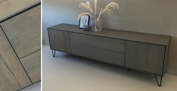 De meubelen zijn leverbaar in alle kleuren van BKS. "We presenteren de meubelen in onze nieuwe kleuren Buffalo Brown en Eagle Light. Een donkere warme kleur gecombineerd met een vergrijsde naturel-tint. De meubelen presenteren we met een geborstelde afwerking waardoor de pure houtstructuur extra wordt benadrukt maar de uitstraling strak blijft", legt Jan uit.