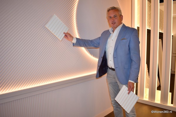 De kwaliteit van het bezoek is ook erg hoog; je merkt dat iedereen doelgericht binnen komt wandelen. Opvallend is verder dat veel mensen zich goed voorbereiden, vooraf via de digitale snelweg hebben laten informeren, ook onder andere via jullie nieuwsplatform Wonen360. Verder hadden we via Instagram aandacht gevraagd voor een roze wandafwerking met 3D wallcoverings panelen. Ik merkte echt dat ze langs kwamen om die in het echt te komen bewonderen. En dan is het mooi als je reacties krijgt van 'in het echt is hij nog mooier'.