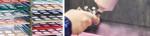 Om de bijzondere kleurdiepte te verkrijgen, worden de schakelaars en contactdozen in de JUNG-fabriek gemaakt. Alle restjes en stofdeeltjes worden vervolgens zorgvuldig verwijderd om nadien de schakelaars en contactdozen met de hand te beschilderen. Eenmaal droog, wordt nog een laag aangebracht om de fluweelzachte en matte look te verkrijgen.