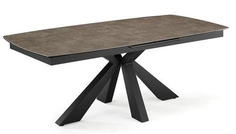 Tafel Edge is 180 cm lang met 2 extra tafelstukken van 40 cm. Het bovenblad is in keramiek, metalen onderstel in spidervorm met poederlak in zwart.