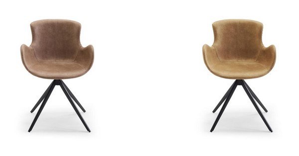 Eigentijdse stoelen met een soft line shape. Toplaag in kwalitatief suède met een lederen backing. Verkrijgbaar in verschillende kleuren.