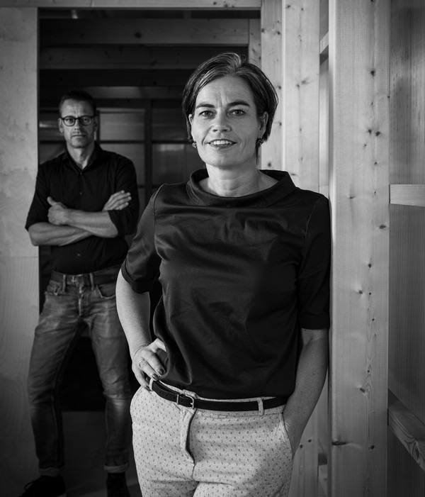 Via snijders, die patroondelen maken, krijg je als stikker een stapel stof of leer; de eerste gang naar een meubel ontstaat dus op de stikkerij", legt Alette uit. Zij en Sander Prinsen (zie foto hieronder) zijn sinds 2006 de eigenaren van Harvink.