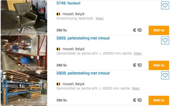 Het gaat om een vierdelige online veiling. Op Troostwijkauctions.com zijn alle producten terug te vinden.