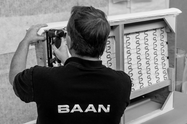 Het is een drukte van belang in de showrooms van BAAN, welk bedrijf al 45 jaar op de huidige locatie (langs kanaal De Gouwe) is gehuisvest. Op de benedenverdieping, waar de collectie BAAN wordt geshowd, is een fotoshoot aan de gang voor de nieuwe website, die over een maand de ether ingaat. Op de eerste etage wordt het designlabel Metropole getoond. Alle meubelen worden stuk voor stuk handmatig in de eigen fabriek vervaardigd, geheel naar wens van de klant. Al drie generaties lang heeft het bedrijf de expertise in huis om het meest optimale comfort te realiseren. Daar blijkt ook alles om te draaien bij BAAN: zitcomfort én maatwerk. "Meubelen zijn om van te genieten, dan kan alleen met de goede hoogte, juiste diepte en een fijne zit. Niet voor niets luidt onze slogan Design to enjoy."
