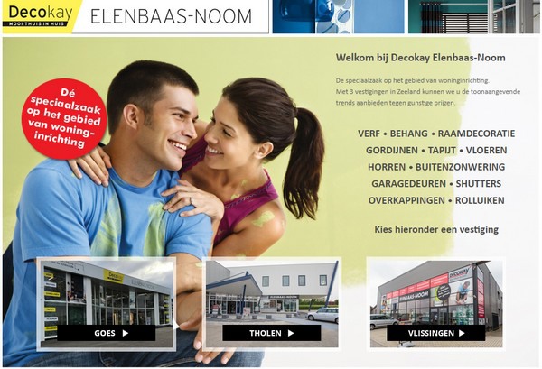 Decokay Elenbaas Noom, dat aan een kleine 20 mannen en vrouwen werk biedt, heeft een breed aanbod in huis van verf, gordijnen, behang, vloerbedekking, buiten- en binnenzonwering, horren, kastenwanden, garagedeuren etc. Jan Elenbaas (35) is inmiddels de derde generatie en staat sinds 2006 in de familiezaak, waarin ook zijn ouders Lies en Pieja nog volop actief zijn. De volwaardige woninginrichtingsspecialist werkt alleen met A-producten die scherp in de markt worden gezet. "Folder- en online-aanbiedingen geven ons richting de consument veel houvast. Ruimte om over de prijs te onderhandelen is er in principe niet. Dit zijn de aanbiedingen."