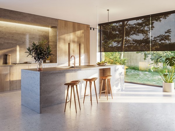 Deze rolgordijnen vallen op door hun luxueuze en verfijnde afwerking. De covers, onderlatten en afdeklijsten kunnen worden gekozen in een stijlvol mat aluminium. Er werd gekozen voor hedendaagse kleuren zoals mat zwart, antraciet, brons, aluminium... Nieuw is ook de optie van een sierkoof met een ingewerkte gordijnrail. Zo kan een rolgordijn gemakkelijk worden gecombineerd met overgordijnen.
