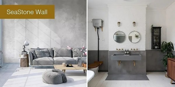 SeaStone microcement is een kant-en-klare beton ciré stuc op basis van cement, verschillende harsvarianten en minerale pigmenten, niet te verwarren met betonlookverf. Een écht cementgebonden stuc dat bovendien kant-en-klaar is, is nieuw in de markt.