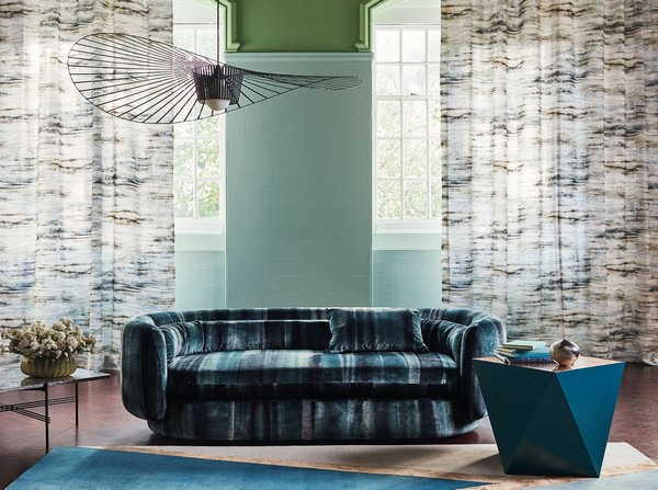 "Een rijke, stralende collectie met een overvloed aan texturen. Verfijnde weef- en baanbrekende druktechnieken werden toegepast op weelderig velours en luxe satijn. Stijlvolle tinten, zoals gedempt blauwgroen, marineblauw en donkerroze, vormen een perfecte balans met de elegante metallics en natuurtinten."