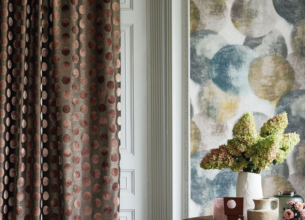 "Een rijke, stralende collectie met een overvloed aan texturen. Verfijnde weef- en baanbrekende druktechnieken werden toegepast op weelderig velours en luxe satijn. Stijlvolle tinten, zoals gedempt blauwgroen, marineblauw en donkerroze, vormen een perfecte balans met de elegante metallics en natuurtinten."