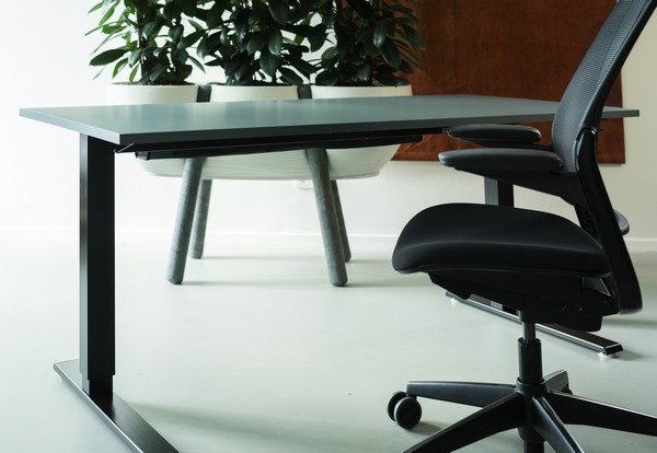 Een werkplek gemaakt in Nederland, frame, lichtgewicht bureaublad en gezond akoestisch bureauscherm.