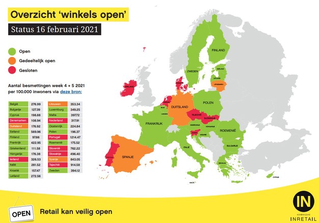 INretail roept het kabinet op de winkels op 3 maart weer te heropenen. “Dat kan veilig. De winkelsluiting was een extra maatregel vanwege de fase ‘zeer ernstig’ op de routekaart van de overheid. Die is met 146 besmettingen per honderdduizend mensen verleden tijd. De situatie in de retail non-food wordt iedere dag slechter. Winkels nog langer dichthouden, is economisch onverantwoord en op geen enkele manier meer uit te leggen. Ook in andere EU-landen gingen winkels inmiddels weer open.”