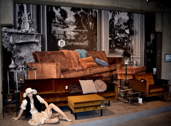 Leuk sfeerplaatje in het Experience Center, waar het label BePureHome wordt geshowd. Voor deze collectie heeft het bedrijf zich laten inspireren door rijke materialen en warme tinten.