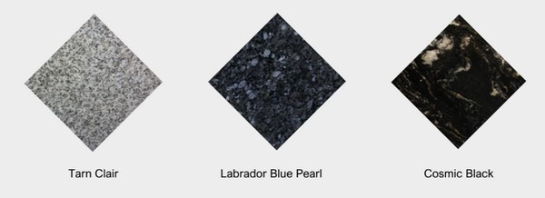 "Met Labrador Brown en Labrador Blue Pearl uit onze eigen Noorse groeves van Larvik Granite haal je de bruine en blauwe tinten in huis. Wie het contrast graag wat meer in de verf zet, kiest voor de Franse graniet Tarn van Family Member Granitarn of voor de zwarte graniet met bleke adering Cosmic Black. Beide onderschrijven ze de offblack-trend. Wil je liever rustige tinten aanbrengen? Ga dan voor Rio Branco of Branco Piracema, twee grijs-witte granieten die tijdloze rust uitstraalen. Net zoals Rose de la Clarté uit de eigen Franse groeves van Family Member SAG."
