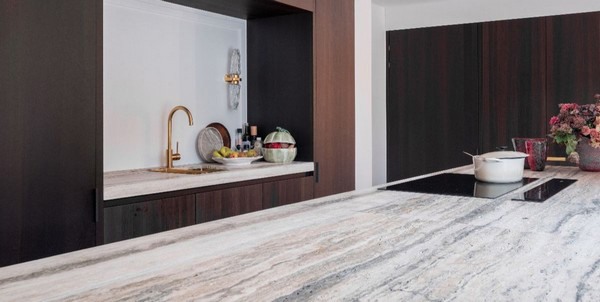 In natuursteen merken we de opmars van kwartsieten. Deze uitterst sterke natuursteen is zuur-, kras- en hittebestendig. Door hun hoge onderhoudsvriendelijkheid, zijn ze onder meer geschikt als duurzaam keukenwerkblad. Met Azul Macaubas, bijvoorbeeld, haal je de blauwe zeegolven naar een interieur, met Emerald Green integreer je meteen de rust van de groene natuur."