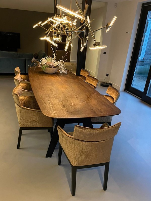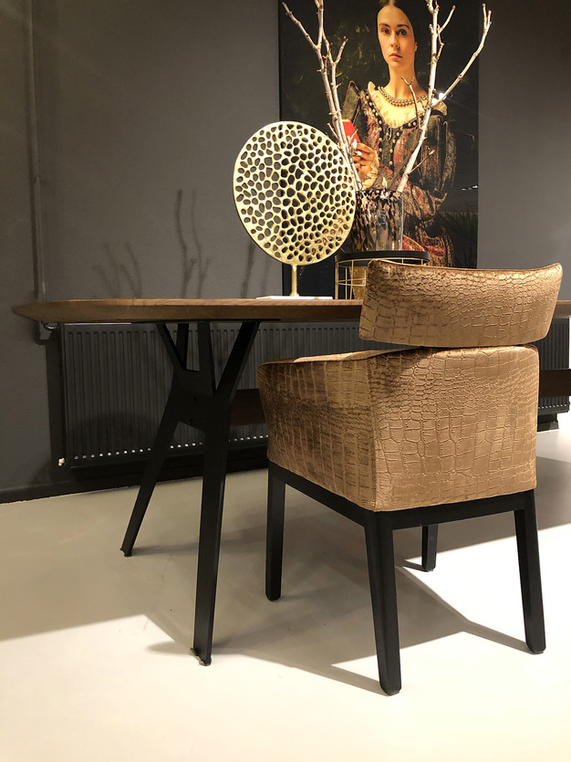 Ook nieuw is Finato, een moderne, verfijnde eettafel met smalle poten van staal. Het blad ziet er door de afwerking dun uit, maar is toch echt van degelijk, massief eikenhout gemaakt. Verder is de tafel door onze eigen vakmensen handmatig gebrand, wat een unieke afwerking geeft. Volgens haar komt er nog veel meer nieuws aan. "Als team sparren we veel, zijn we constant op zoek naar nieuwigheden. Jamé heeft onlangs ook weer twee nieuwe modellen gelanceerd", kondigt ze alvast aan.