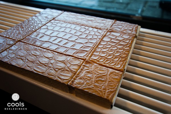 De exclusieve krokodillenhuiden uit Zuid-Amerika worden verwerkt in een exclusief interieurproject voor een megajacht.