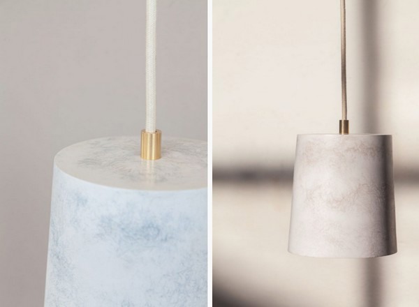 De lampenkap van de Jute Light wordt handmatig en in kleine series door Laura gemaakt uit 50% jute vezels en 50% porseleingips. De combinatie van jute met gips zorgt ervoor dat beide materialen elkaar versterken. De jute vezel werkt namelijk als bewapening in het gips en zorgt tegelijkertijd voor een bijzonder en uniek patroon. Voordat de twee materialen met elkaar vermengd worden krijgen de vezels bij voorkeur een natuurlijk kleurbad, zoals indigo, kurkuma of rode oker. De kracht en schoonheid van het uiteindelijke materiaal wordt benadrukt in het minimalistische ontwerp van de lamp.