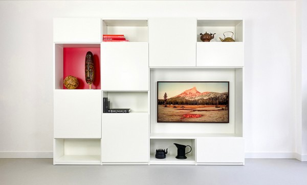 De Random boekenkast krijgt de afmeting die het interieur van de klant verrijkt, zonder dominant te worden of weg te vallen. Random kan een wandkast, hoekkast vrijstaande kast of roomdivider worden. Van een eenvoudig ontwerp tot een kast van wand tot wand. Van vloer tot plafond. De kast krijgt zijn functie door de ruime selectie aan open en gesloten delen, deuren, kleppen, lades, schuifdeuren, uitneembare panelen of zelfs metalen inzetboxen met subtiele ledverlichting.