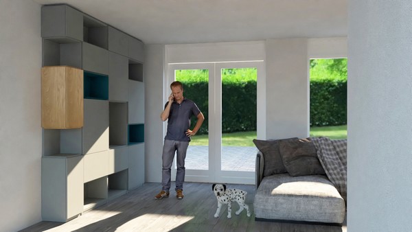 Een Random staat niet zomaar bij een klant in huis. Daar gaat een behoorlijk traject aan vooraf laat John weten. “Alles begint met de ideeën van de klant. In een eerste gesprek ontstaat een schets en een beeld van de vorm die bij het interieur past. Dat gesprek vindt bij voorkeur plaats bij de klant. Zo krijgen we een goed beeld van de leefomgeving, de ruimte en de mogelijke locatie van de kast. Daarna volgt de selectie van de materialen en de kleuren. Komt er bijvoorbeeld een TV in te staan, of moet die juist na het Netflixen uit het zicht verdwijnen? Maar ook de wens om kunst of een boekencollectie in vol ornaat te tonen, bepaalt de uitstraling van de Random. De volgende belangrijke stap is het kostenplaatje en de 3D presentatie van het ontwerp. Die laat zien hoe de kast de ruimte bij de klant verrijkt. Als dat ontwerp naar de zin van de klant gaan we de kast inmeten en zorgen we dat het definitieve ontwerp geproduceerd wordt. De laatste stap is de montage van de kast op locatie.”