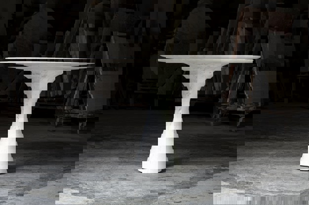 De Angelo M tafel werd midden 2019 gelanceerd en is het afgelopen jaar uitgegroeid tot een veelzijdige collectie die de schoonheid van marmer weerspiegelt. Het ontwerp wordt gekenmerkt door een sculpturale vorm, robuust materiaal, elegante belijning en verfijnde afwerking.