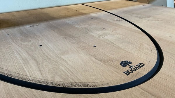 "Onze eigen merk BOGARD en Logo frezen we voortaan in al onze onderzijdes van de bladen. Tevens zijn al onze bladen en onderstellen opgebouwd in modules. De tafels zijn dus voortaan plug and play. "