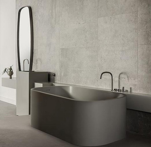 Dit bad is gehouwen uit één blok marmer, hier voorzien van een baduitloop uit de Piet Boon by COCOON collectie. Voor het ontwerp van de badkuip hebben vormen een duidelijke functionaliteit en krachtige volumes. De vorm van de badkuip kan omschreven worden als een afgeronde rechthoek, versterkt door een ergonomische organische vorm aan de binnenzijde."