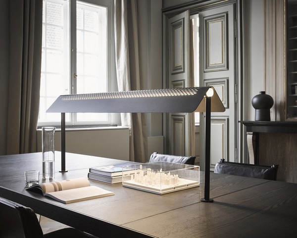 Zijn uitgeslagen vleugels lijken in de lucht te hangen. Flybye – een ontwerp van Ernst Koning– bestaat uit een kap van gepoedercoat staal met een heldere vorm. Deze kap rust op een hoogwaardige, op maat gemaakte led-buis met warm wit licht. De twee elementen zorgen samen voor functioneel direct licht. Door de perforatie in de kap geeft de Flybye ook indirect licht, wat voor een evenwichtige lichtspreiding zorgt. Dit maakt de hanglamp geschikt voor boven de eettafel, werktafel of een keukeneiland. Nieuw zijn Flybye in twee tafellamp-varianten: T1 en T2. T1 rust op een enkele poot die geplaatst is in het midden van de lamp. Het is mogelijk de poot rechtstreeks op de tafel te monteren of op een standaard. T2 is een verlengde tafellamp die geschikt is voor het gebruik in bibliotheken, kantoren en vergadertafels. De positie van de kap creëert een natuurlijke ruimteverdeler en daarmee privacy. Net als bij T1 zijn de poten direct op de tafel te bevestigen.