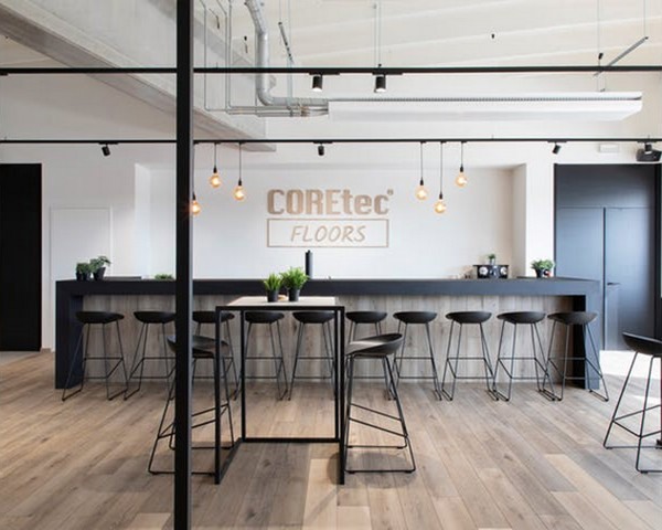 Onlangs verhuisden de USFloors – COREtec hoofdkantoren naar een nieuw bedrijfsgebouw in Kruisem. Voor de vloeren in het gebouw werd gekozen voor 12 verschillende decoren uit de COREtec vloerencollecties voor een passende look. Het mengen van verschillende stijlen kan namelijk zonder problemen. "Of je nu graag een combinatie van donker en licht wil, of tegels aan planken wil laten aansluiten, het kan met weinig moeite."