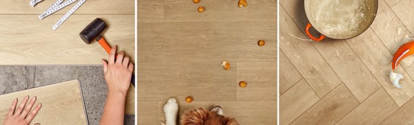 Er werd hard gewerkt aan een zo natuurlijk mogelijk uitzicht van de planken en daar is men zeker in geslaagd: een realistische houtstructuur in combinatie met een zeer lage glansgraad (slechts 2-4%) en subtiele kleurschakeringen zorgen voor een vloer die nauwelijks te onderscheiden is van een echte parketvloer. Ook trendy visgraatvloeren en tegels in marmer-look ontbreken niet in het aanbod.