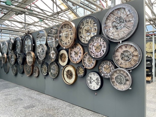 Ook de beurzen gingen niet door. "We staan op Trendz en Christmasworld om ook nieuwe klanten te werven." De klokkenwand die bekend is van de stand bij Trendz en Christmasworld, is ook nu weer aangevuld met nieuwe klokken. Van groot tot klein. Romantisch tot industrieel. Voor elk wat wils. Onlangs is de outdoorcollectie gelanceerd.
