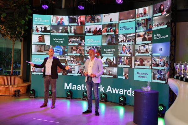 Op donderdag 3 juni werden voor de derde keer op een rij de Baars & Bloemhoff Maatwerk Awards uitgereikt. De beste interieurbouwers en meubelmakers van Nederland werden deze editie digitaal in de schijnwerpers gezet. Letterlijk; want alle 48 finalisten waren live in de uitzending aanwezig op een enorm led scherm. Presentatoren John Faas (business unitmanager Baars & Bloemhoff), Kees Hoogendijk (directeur koninklijke CBM) en side-kick Elwin Jonkers (Solid Surface specialist) maakte er samen met de virtuele toeschouwers een onvergetelijke avond van. De Werkspoorfabriek vormde het imposante decor van de uitreiking.