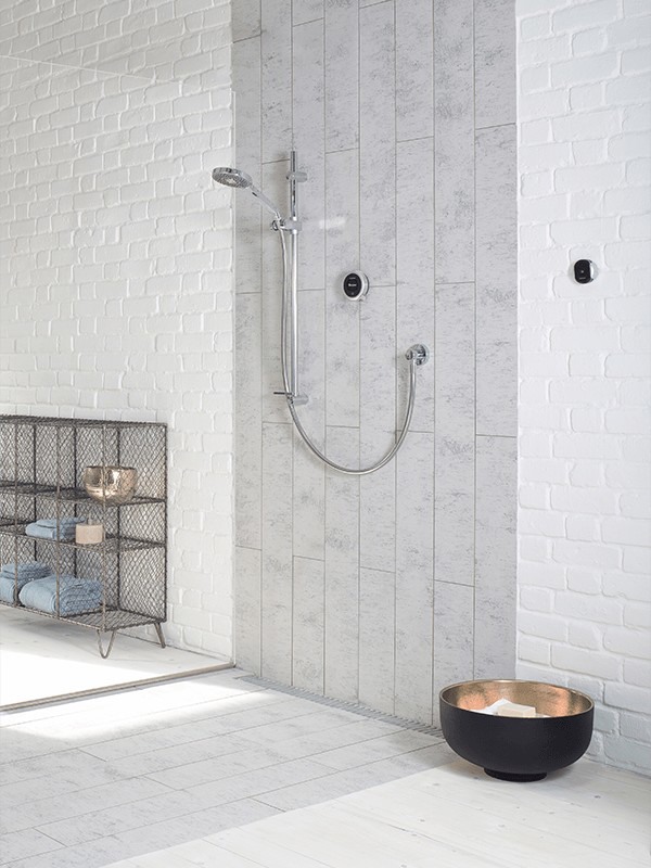 "Een nabijheidssensor houdt de omgeving in de gaten. Zo gauw je een stap achteruit zet, stopt het water, zodat je energie en water bespaart. In de koude wintermaanden kun je direct een douche nemen, want het water wordt voorverwarmd en 'wacht' vervolgens op jou, zodat je water bespaart. Verder is er een afstandsbediening om de douche in te schakelen zodat je ervan kunt genieten zodra het water warm is.