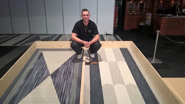 Dave Amweg (41) van Ocs Interiors heeft jarenlang meegedaan als deelnemer bij het NK Woning- en Projectstofferen, maar is nu een van de organisatoren. De floorartist is van huis uit een echte allround woningstoffeerder. ''Vanaf mijn 15e werk ik al in deze branche. Vroeger liep ik met een rol tapijt onder mijn arm, tegenwoordig met een pak pvc en egaline.'' Het eindresultaat geeft voor de allround stoffeerder altijd weer een drive om door te gaan.