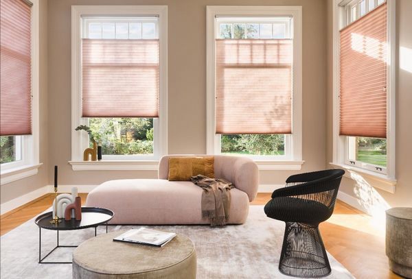 Luxaflex geeft een tip: "Combineer je gordijnen met transparante Duette Shades of vouwgordijnen. Door te spelen met verschillende lagen, patronen en transparanties creëer je rust, warmte en een optimale akoestiek en isolatie in de ruimte."