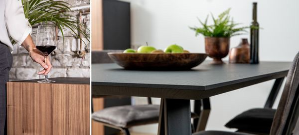 In het verleden heeft de meubelfabriek nooit eerder met notenhout gewerkt. John van der Donk, vertegenwoordiger van Van der Drift Meubelen, legt uit waarom dit het moment is om daar verandering in te brengen. "We wilden iets anders dan anders. Dus we zijn out-of-the-box gaan denken en zo kwamen we op notenhout. Als je eikenhout kleurt krijg je erg strakke kleuren, waardoor je de houtnerfstructuren niet meer goed ziet. Met het notenhout hebben we toch een andere kleur aan het assortiment kunnen toevoegen, waarbij de nerven nog duidelijk te zien zijn."