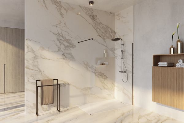 Je inloopdouche is vaak het statement van je badkamer. Dat wordt het vooral door de wandbekleding. Hiermee schrap je de hevige breekwerken uit je renovatieplanning, zonder dat dat afbreuk doet aan het eindresultaat. Je plaatst de panelen gewoon tegen de bestaande wand en je hebt een stijlvolle douche gecreëerd. Zo versnel je je renovatie en krijg je een knap en elegant resultaat. Kies voor solid surface, leisteenstructuur, keramiek of acryl.