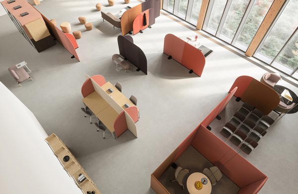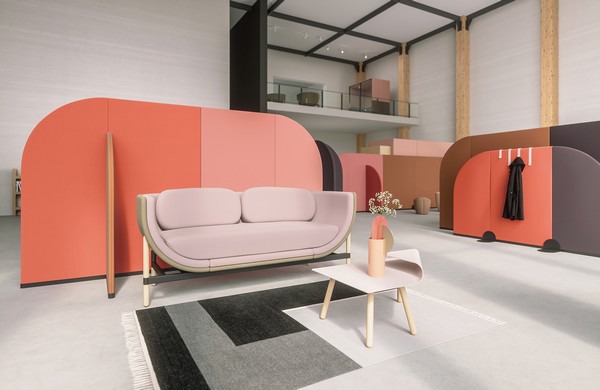 Met Wallstreet presenteert designer Kateryna Sokolova haar visie op een flexibele herindeling van open ruimtes. Hierbij zijn de beoogde activiteiten in een ruimte het uitgangspunt. Kateryna Sokolona benadrukt: “Een goede visuele uitstraling en heldere zonering draagt bij aan de productiviteit en welzijn van de gebruiker”.