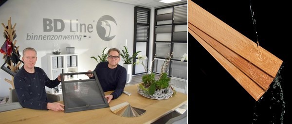 De grote houtcollectie van BD Line wordt verder uitgebreid. Nieuwkomers zijn de collecties Loft Wood en Supreme Wood. Bezoekers van de vakbeurs InCoDa reageerden zeer enthousiast op beide producten, die daar voor het eerst gepresenteerd werden. Loft Wood is een 50mm jaloezie lijn die vervaardigd wordt van de lichte houtsoort Paulownia hout en daardoor tot wel 4 meter breed geproduceerd kan worden. Daarnaast zit er in de Loft Wood collectie één staal (Splash) die geschikt is voor natte ruimtes", zegt Dick, terwijl hij een staal pakt en deze met water besproeid. "Waar ruikt dit naar? Je waant je meteen in een sauna. Dit is de aangename geur die de Splash kan afgeven wanneer deze vochtig wordt”. Supreme Wood is een nieuwe serie waar de aandacht van de stalenwaaier volledig gefocust is op een lamelbreedte van 90mm. Supreme Wood is ook verkrijgbaar als 50 en 70mm. Begin volgend jaar gaan beide collecties de markt in. Deze ruime keuze in verschillende kwaliteiten maakt de houtcollectie interessant voor een hele brede doelgroep en zorgt er voor dat BD Line intussen één van de grootste leveranciers van houten jaloezieën gaat worden.