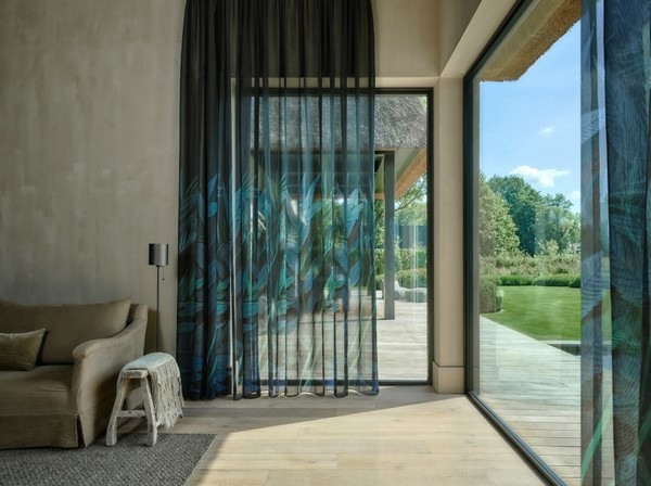 Keywords: luxury living, geraffineerd, authentiek, soft, grote exclusieve botanische dessins gedrukt op rijke commerciële kamerhoge doeken.