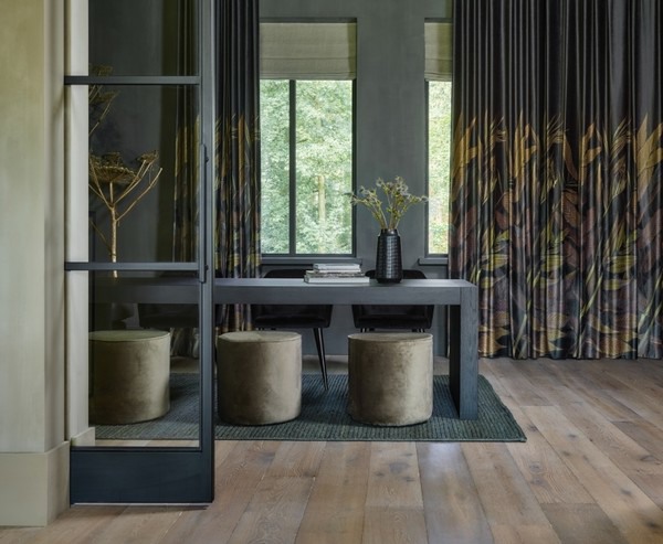 Kleuren: diep kleurpalet met bruin, zwart, donkere groen- en blauwtinten in combinatie met subtiele goud,- koper en brons tinten geven een hele luxueuze uitstraling aan je interieur.