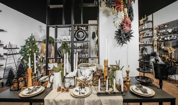 "Verder de Scandinavische thema’s Scandi Vibes en Nordic Christmas met strakke organische vormen. Zwart is hier een belangrijke kleur samen met grijs en taupe tinten. En... huisjes, huisjes en nog eens huisjes zie je overal terug in de thema’s."