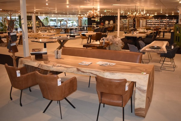 De markt van boomstamtafels daarentegen is verzadigd. Daarom specialiseren wij ons in hele grote bladen, bijvoorbeeld met een lengte van 6,50 meter en een breedte van 1,80 meter. Die markt is wel klein, maar er is wel vraag naar. Zeker in de hospitalitybranche."