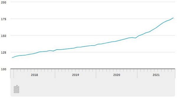 In juni 2013 bereikten de prijzen van koopwoningen een dieptepunt. Sindsdien is er sprake van een stijgende trend. De index lag in november 2021 op het hoogste niveau ooit. Vergeleken met het dal in juni 2013 waren de prijzen in november bijna 86 procent hoger.