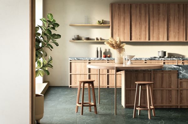 De complete Moduleo LayRed collectie bij uitstek geschikt voor het combineren van de nieuwe tegeldessins in combinatie met de planken in houtdessins. Dit alles met een naadloze overgang, zodat je zoning kunt toepassen zonder compromissen. Door hout- en steendessins te combineren, definieer je niet alleen verschillende zones of functies in huis, maar geeft je het interieur ook persoonlijkheid door warmte te creëren door materialen in lagen aan te brengen.
