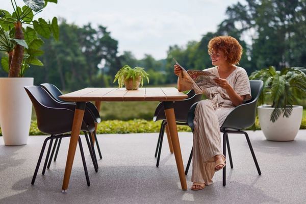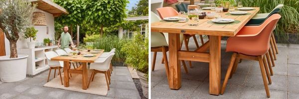 een te blijven met de natuur. Hoe ziet hartman dit terug in het Nederlandse outdoor leven? Onder andere door de inzet van materialen die vervaardigd zijn uit natuurlijke grondstoffen. Zoals de Yasmani tafel. Deze robuuste tafel is geheel gemaakt van gecertificeerd teakhout. Als je de tafel zo nu en dan behandeld, dan blijft het deze kleur. Doe je dit niet, dan krijgt het een trendy grijs-zilveren kleur.