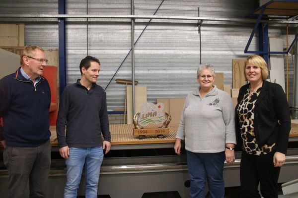 Drie jaar na het vieren van het 25-jarige bestaan van Lima Meubelmakerij heeft Wim Geurts een kunstwerk laten maken ter ere van het zilveren jubileum, genaamd 'De handen ineen slaan’. Dat laat Marcel Willems, mede-eigenaar bij Lima Meubelmakerij, weten op social media.