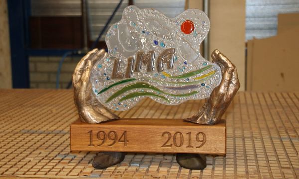 De naam Lima is verwerkt in een glazen wolk met kleuraccenten die de dynamiek en de groei weergeven van het bedrijf. De zon moet altijd blijven schijnen als een teken van leven.